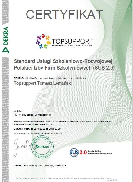 Jako zespół Topsupport oferujemy różnorodne szkolenia, obejmujące zasadnicze obszary niemal każdego biznesu, czyli zagadnienia związane z budowaniem strategii biznesowej, marketingu, kreowaniem marki i wizerunku, zarządzaniem, sprzedażą oraz obsługą klienta aż po logistykę i BHP. Naszą wiedzą i doświadczeniem dzielimy się za pomocą szerokiego wachlarza narzędzi szkoleniowych, doradczych, coachingowych i mentoringowych. Wszystkie szkolenia oparte są o najwyższe standardy usług szkoleniowych oraz kodeks dobrych praktyk Polskiej Izby Firm Szkoleniowych.